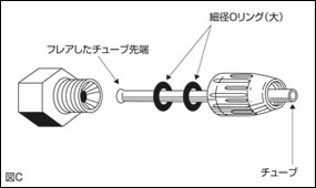 • 細径コネクターの使用しない接続口はOリングを取り除き、別売ブランクPTFEコーンに交換すれば閉鎖できます。